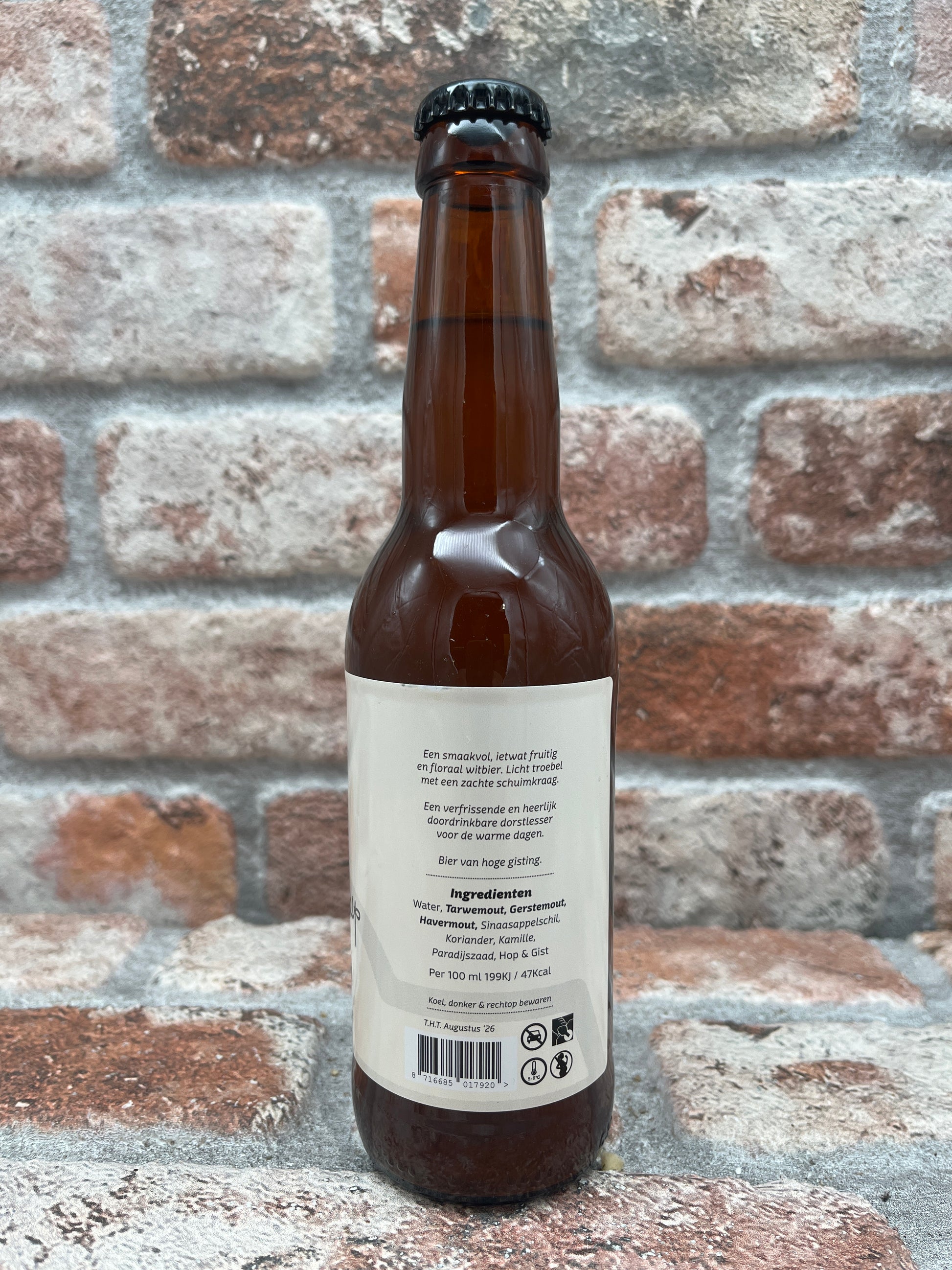 Een smaakvol, ietwat fruitig en bloemenwit bier. Licht bewolkt met een zachte kop. Een verfrissende en heerlijk drinkbare dorst -quencher voor de warmere dagen.