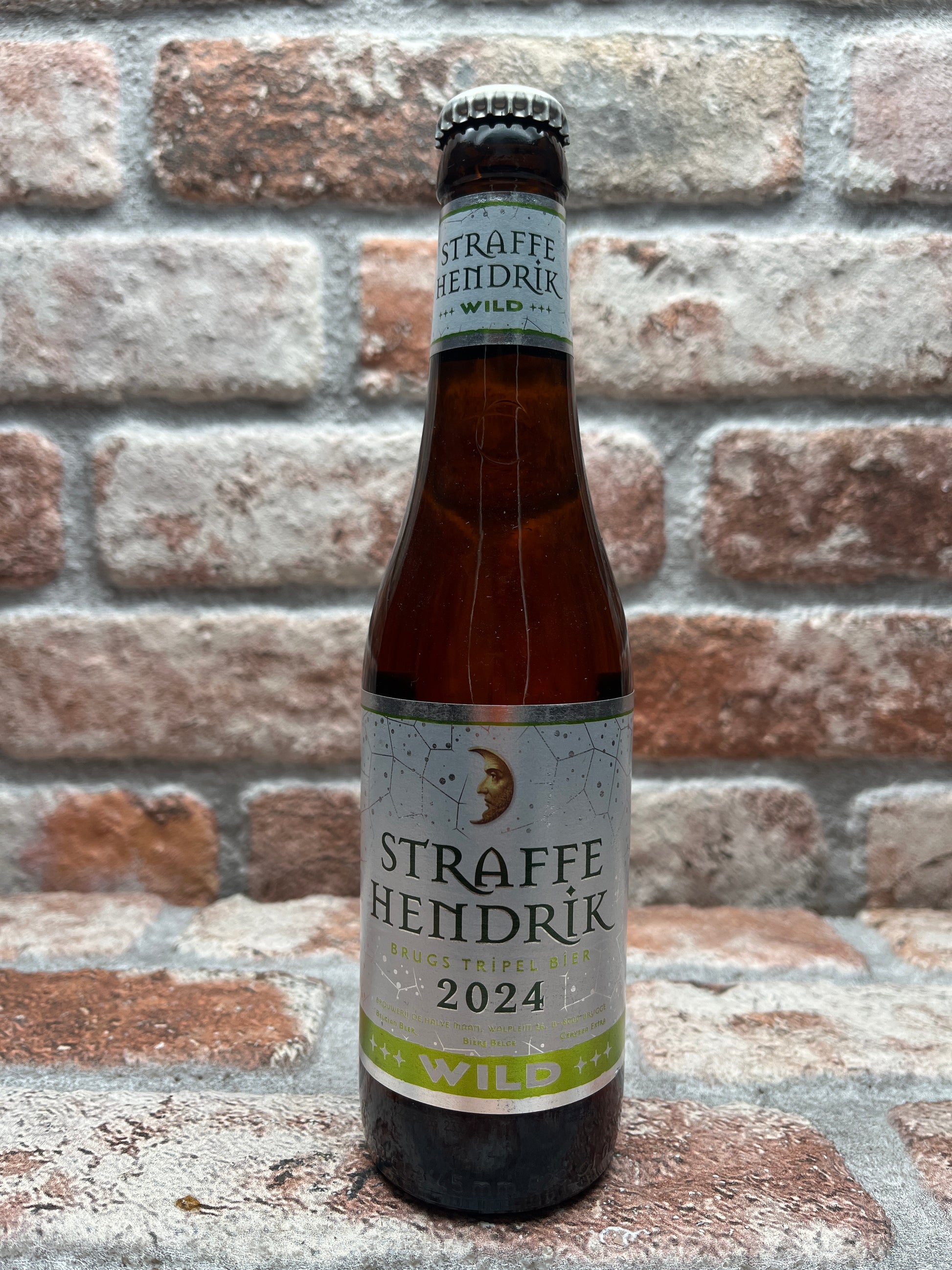 Traditioneel bier van hoge gisting. Gebrouwen door de unieke familiebrouwerij "De Halve Maan", die sinds 1856 gevestigd is in het historische hart van Brugge. Straffe Hendrik Wild is een versie van het originele Tripelbier, waarbij het bier hergist wordt met "wilde" Brettanomyces-gisten die het bier een langere houdbaarheid geven met een unieke smaakevolutie door de jaren heen. (van etiket) Een nieuwe editie met een geheel nieuwe look! Straffe Hendrik Wild 2024 schittert met een vernieuwd label. Eén keer per jaar produceren de brouwers een unieke en wilde variant van onze Tripel. Het speciaalbier hergisten de brouwers met ‘Brett’ gist, wat zorgt voor een mooie evolutie in smaak en langere houdbaarheid. (van https://shop.halvemaan.be/nl/straffe-hendrik-wild-2024.html)