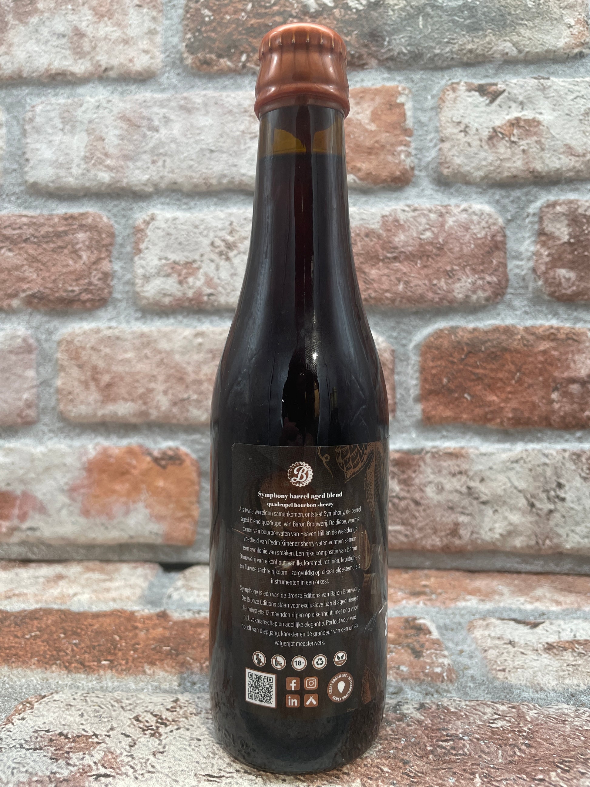 When two worlds collide, Symphony by Baron Brouwerij is born. The deep, warm notes of Heaven Hill bourbon casks and the lush sweetness of Pedro Ximénez sherry casks combine to create a symphony of flavors. Imagine a rich composition of oak, vanilla, caramel, raisins, spice, and velvety richness – perfectly in tune like instruments in an orchestra. Symphony is one of Baron Brouwerij's exclusive Bronze Editions: unique barrel-aged beers matured for at least 12 months in oak, with an eye for time, craftsmanship, and noble elegance. A masterpiece for those who crave depth and character.